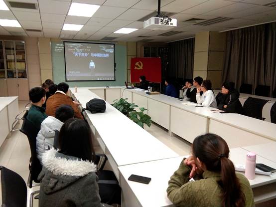在党课过程中,徐聪毅同志对《决定》中提到的“百年未有之大变局”做出自己的解读,结合苏联解体的失败经验,阐述了我们党站在“两个一百年”奋斗目标历史交汇点上召开十九届四中全会的重要性。支部党员观看了由北航战略问题研究中心主任王湘穗以“‘天下三分’与中国的选择”为主题的演讲视频,从王湘穗教授对当前国际形势的解读中引发了更多的思考。