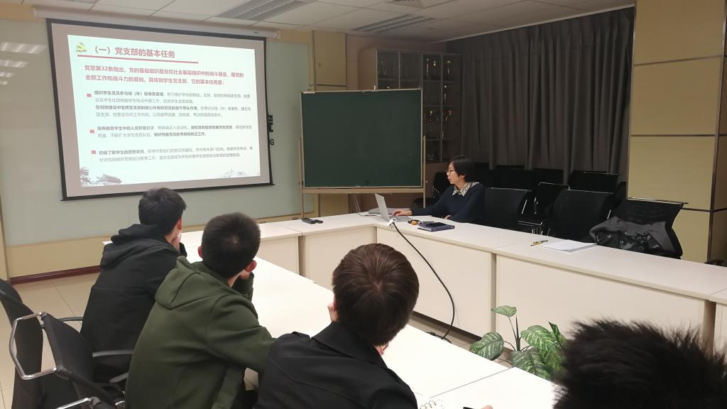 学生党员骨干组织力提升培训班在新主楼C708会议室开展了第三次培训课程,党务办公室专职组织员孙振佳老师作了以《规范组织生活,建好建强党支部》为主题的党务工作培训。党建辅导员、新任党支书、党支部组织委员、连任党支书代表等近二十人参加了此次培训。