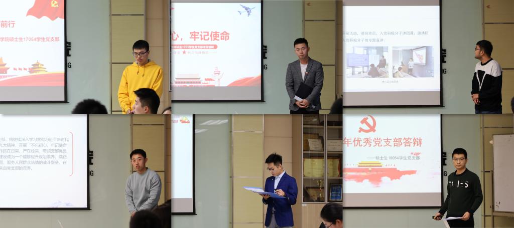 本次答辩会围绕着“理论学习有实效、组织建设有思路、制度建设有保障、支部活动有影响、支部委员有作为、党员队伍有质量、群众工作有认同”的支部建设标准,评选本年度的标兵、优秀学生党支部。11名党支部书记分别就各自支部的组织生活、制度建设、活动开展、成绩荣誉等情况做汇报。