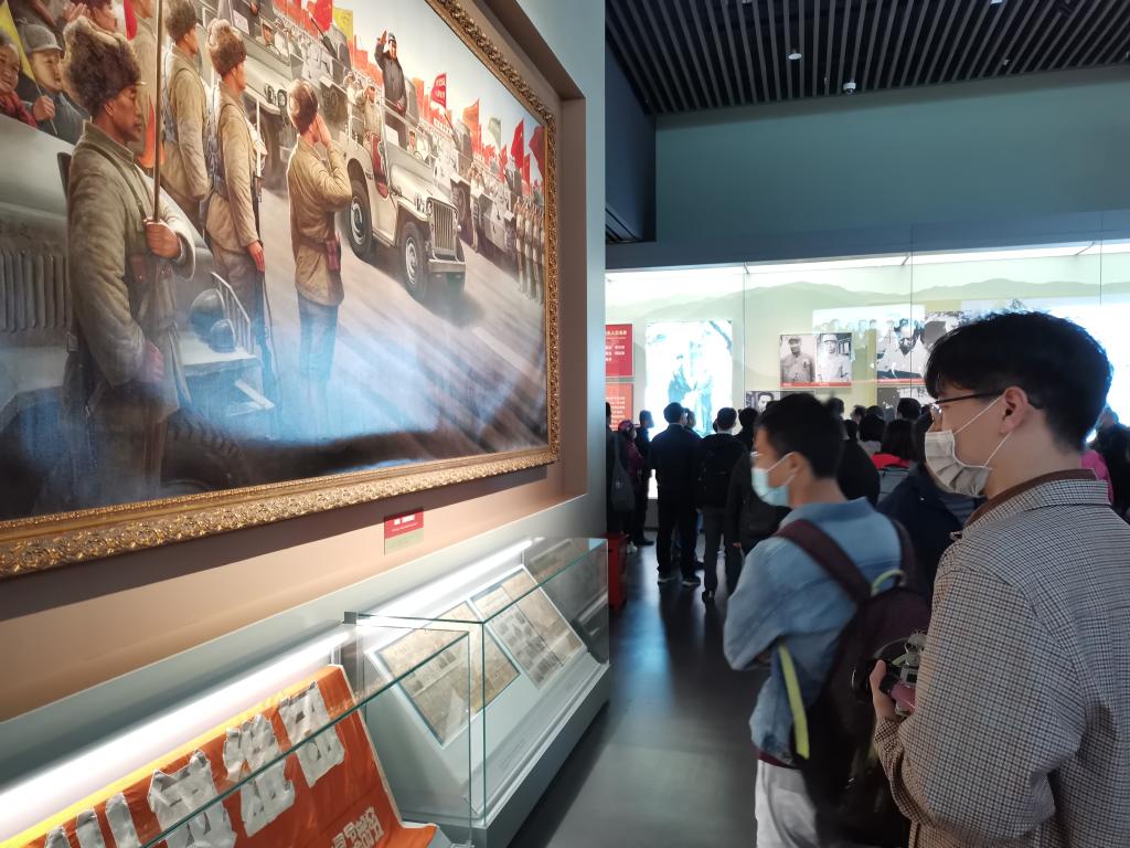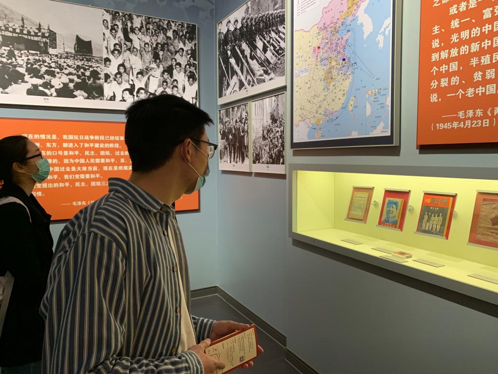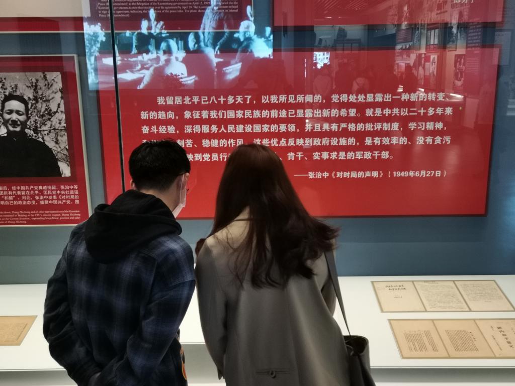 王驰:香山是中国人民解放战争走向全国性胜利的指挥部,在这里我看到了人民群众在大街两侧欢迎解放军进城的历史照片,看到了国民党高级将领来香山和谈期间对中国共产党的认可,还看到了非常珍贵的开国大典的历史影像资料,由衷地为中国共产党实现人民解放并迈向复兴之路感到自豪。