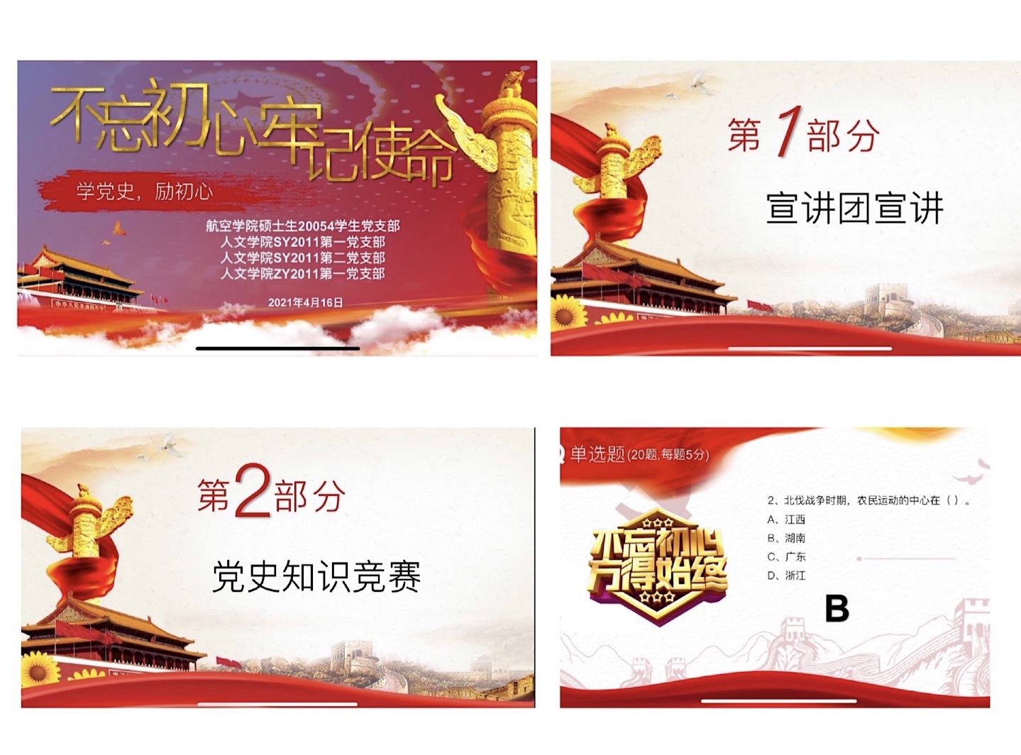 硕士生20054学生党支部、人文社会科学学院SY2011第一党支部、SY2011第二党支部、ZY2011党支部联合开展了“学党史、励初心”系列主题学习日活动。此次学习日活动主要分为宣讲和知识竞赛两个部分:来自北航研究生宣讲团的武佳奇讲师和北航民法典宣讲团的齐笑讲师分别做主题报告,在集体听取了宣讲报告后,支部成员开展了激烈且具趣味性的党史知识竞赛。活动由国产做爱视频