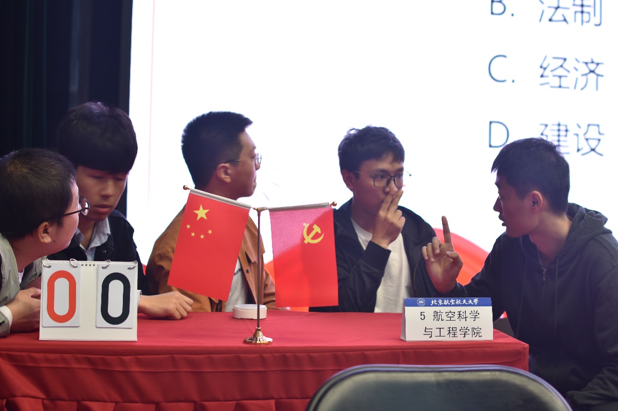 4月25日,党史知识竞赛决赛在沙河校区举行,参赛代表队们共进行了抢答环节和风险作答环节共两个环节的比拼,抢答积分前五的队伍才能晋级第二环节。队员们发挥出色,以10分的成绩稳居小组第一,成功进入第二轮的角逐。