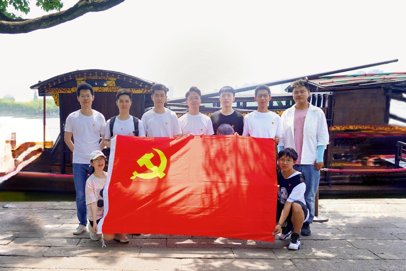 5月30日,队伍奔赴浙江嘉兴市南湖,实地感受红船精神。1921年7月底的一天,南湖浩渺烟波上,停泊一艘单夹弄中型画舫,舫中十多位外地青年从中午11时开会直到傍晚,《中国共产党纲领》在此诞生。习近平总书记曾指出:“只要我们党始终站在时代潮流最前列、站在攻坚克难最前沿、站在最广大人民之中,就必将永远立于不败之地。”这叶小小红船,见证了历史的崭新篇章,是中国共产党人的一座精神丰碑,向世人诉说着不朽的“红船精神”——开天辟地、敢为人先的首创精神,坚定理想、百折不挠的奋斗精神,立党为公、忠诚为民的奉献精神。