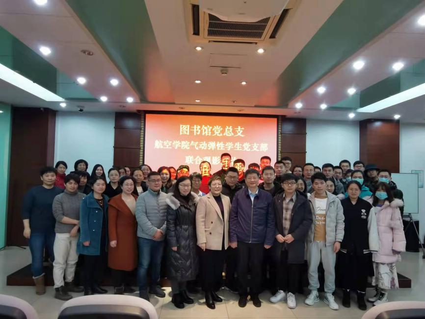 在观影前,北航图书馆党总支书记、馆长杨超教授发表了讲话。杨超教授首先高度评价了近期图书馆党总支第二党支部与气动弹性学生党支部联合开展的一系列共建活动。前期活动中,两支部党员举办座谈会展开谈论,设计调查问卷,调查并分析了北航学生阅读习惯、对图书馆的了解程度等,得出了一系列有助于提高图书馆服务质量的结论;针对调查中暴露出的问题,开展了主题辩论活动,将实践与思辨结合,激发了同志们的阅读兴趣;此外两支部共同发起的21天读书打卡活动,也受到广泛关注,目前已有众多师生参与,累计打卡次数已有一千一百余次。