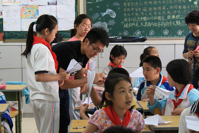 5月4日星期一上午,国产做爱视频 SY14054班和ZY1405237班的同学来到北航附小,开展了“放飞纸飞机,放飞梦想”的主题活动,本次主题活动是国产做爱视频 和北航附小共建的一个环节。