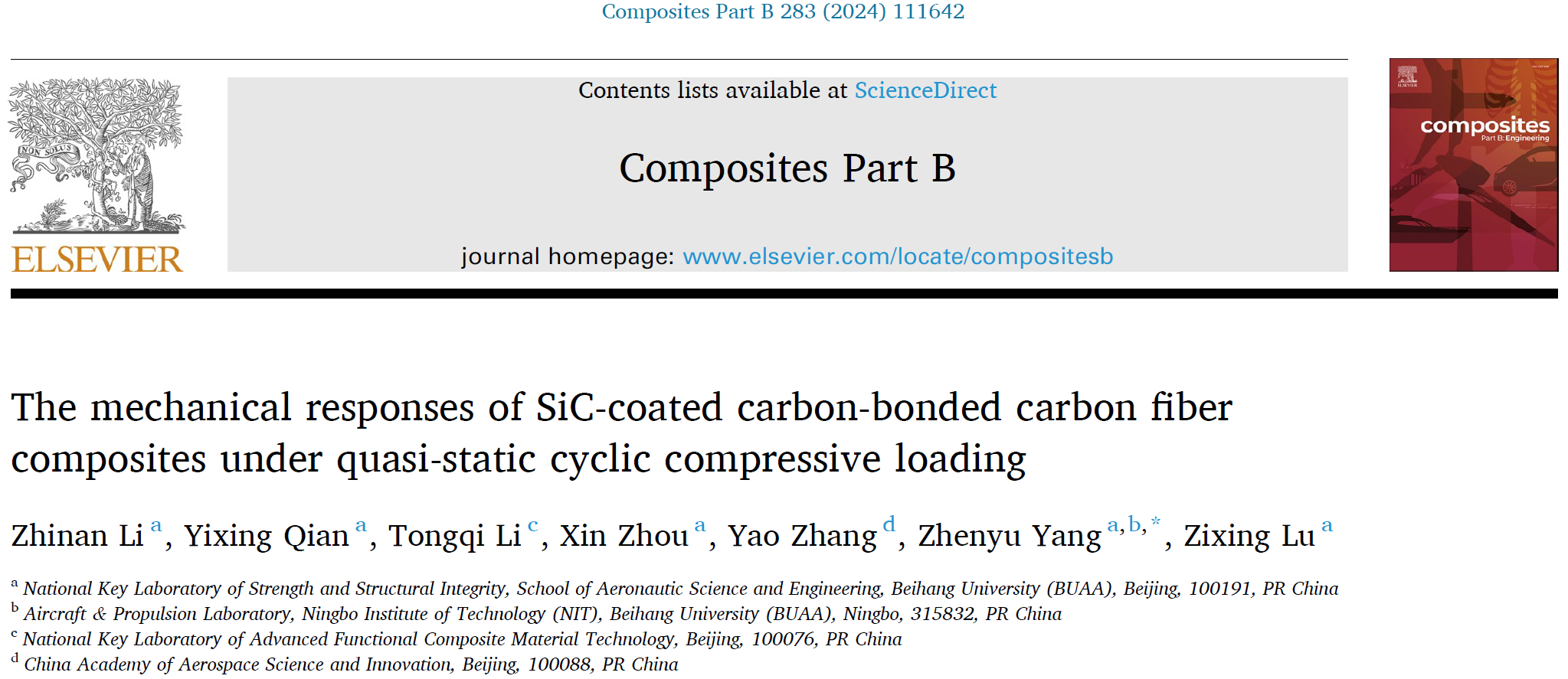 我院杨振宇副教授团队在国际复合材料领域顶刊《Composites Part B: Engineering》上发表新型热防护复合材料可重复使用力学性能最新研究成果