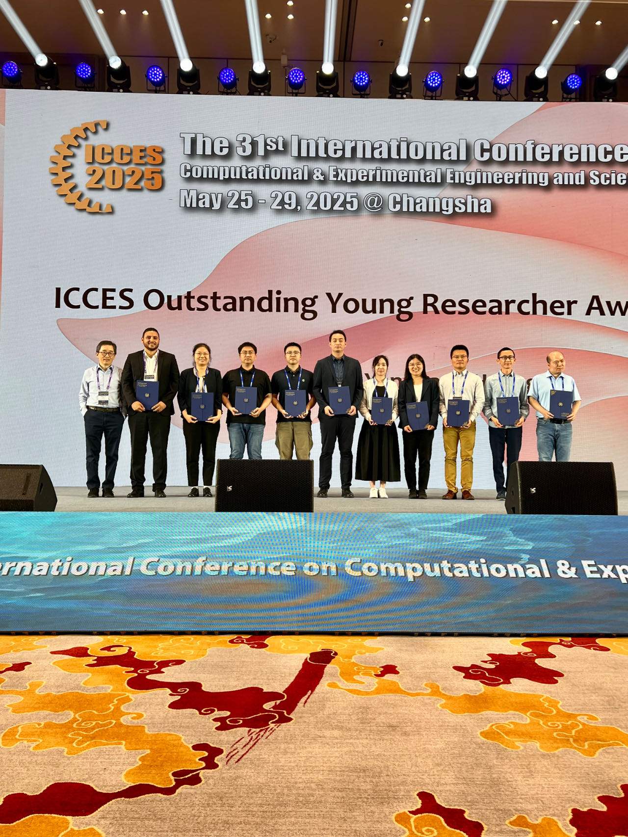 2025年5月25日至29日,第三十一届国际计算与实验科学工程大会(ICCES)在湖南长沙隆重举行。会上,我院丁彬副教授凭借其在微纳米力学与能源材料力学领域的突出贡献,被授予“ICCES Outstanding Young Researcher Award”(ICCES杰出青年学者奖)。该奖项旨在表彰全球40岁以下、在各自学科领域取得卓越成就的青年学者。本年度共有10位来自世界各地的优秀科学家获此殊荣。ICCES是计算与实验科学工程领域的国际权威学术会议,此次...