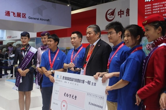 林左鸣董事长亲自为我校获奖团队颁奖 梦想系列飞机设计团队与评委老师合影 “梦想四号” 轻型运动飞机 11月11日,由中航通用飞机有限责任公司和爱飞客航空俱乐部主办的爱飞客首届轻型运动飞机创意...